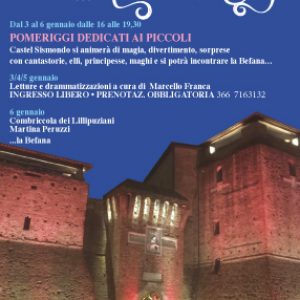 Altra novità è firmata dal Festival Cartoon Club che all’inizio del nuovo anno propone una serie di appuntamenti dedicati espressamente a bambini e famiglie: Il castello dei sogni. Nei pomeriggi del 3-4-5 gennaio il salone del II piano del Castel Sismondo si trasformerà in un luogo  fantastico con letture e drammatizzazioni a cura di Marcello Franca. Uno spettacolo ironico divertente, emozionante per tutta la famiglia, narrato, recitato e cantato, adatto a tutti i bambini dai 5 ai 105 anni (entrata libera, due spettacoli al giorno uno alle ore 18 e uno alle ore 19, con prenotazione obbligatoria al 366.7163132). Il 6 gennaio dalle 16,00 alle 19,30 (entrata libera) il castello si riempirà di personaggi in costume tra i più amati dai bambini: si potranno incontrare, principesse, elfi e maghi e soprattutto si potrà incontrare la Befana. Ospiti d’onore la “Combriccola dei Lillipuziani” con le loro meravigliose magie. A disposizione uno shooting fotografico per tutte le bimbe/bimbi che vorranno indossare gli abiti da principi e principesse.