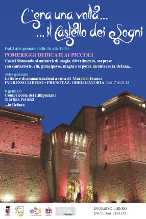 Altra novità è firmata dal Festival Cartoon Club che all’inizio del nuovo anno propone una serie di appuntamenti dedicati espressamente a bambini e famiglie: Il castello dei sogni. Nei pomeriggi del 3-4-5 gennaio il salone del II piano del Castel Sismondo si trasformerà in un luogo  fantastico con letture e drammatizzazioni a cura di Marcello Franca. Uno spettacolo ironico divertente, emozionante per tutta la famiglia, narrato, recitato e cantato, adatto a tutti i bambini dai 5 ai 105 anni (entrata libera, due spettacoli al giorno uno alle ore 18 e uno alle ore 19, con prenotazione obbligatoria al 366.7163132). Il 6 gennaio dalle 16,00 alle 19,30 (entrata libera) il castello si riempirà di personaggi in costume tra i più amati dai bambini: si potranno incontrare, principesse, elfi e maghi e soprattutto si potrà incontrare la Befana. Ospiti d’onore la “Combriccola dei Lillipuziani” con le loro meravigliose magie. A disposizione uno shooting fotografico per tutte le bimbe/bimbi che vorranno indossare gli abiti da principi e principesse.