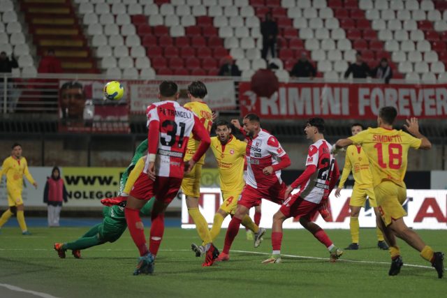 primo gol tra i professionisti del capitano della promozione in C vale ai romagnoli tre punti pesanti, che li fanno salire a quota 28, raggiungendo in classifica proprio i marchigiani. E, finalmente, il Rimini abbina al bel gioco anche il risultato. Proprio quello che aveva chiesto la Curva Est a inizio gara quando ha esposto uno striscione: “Con grinta e determinazione portiamo a casa il risultato, non solo la prestazione. Sveglia ragazzi”.