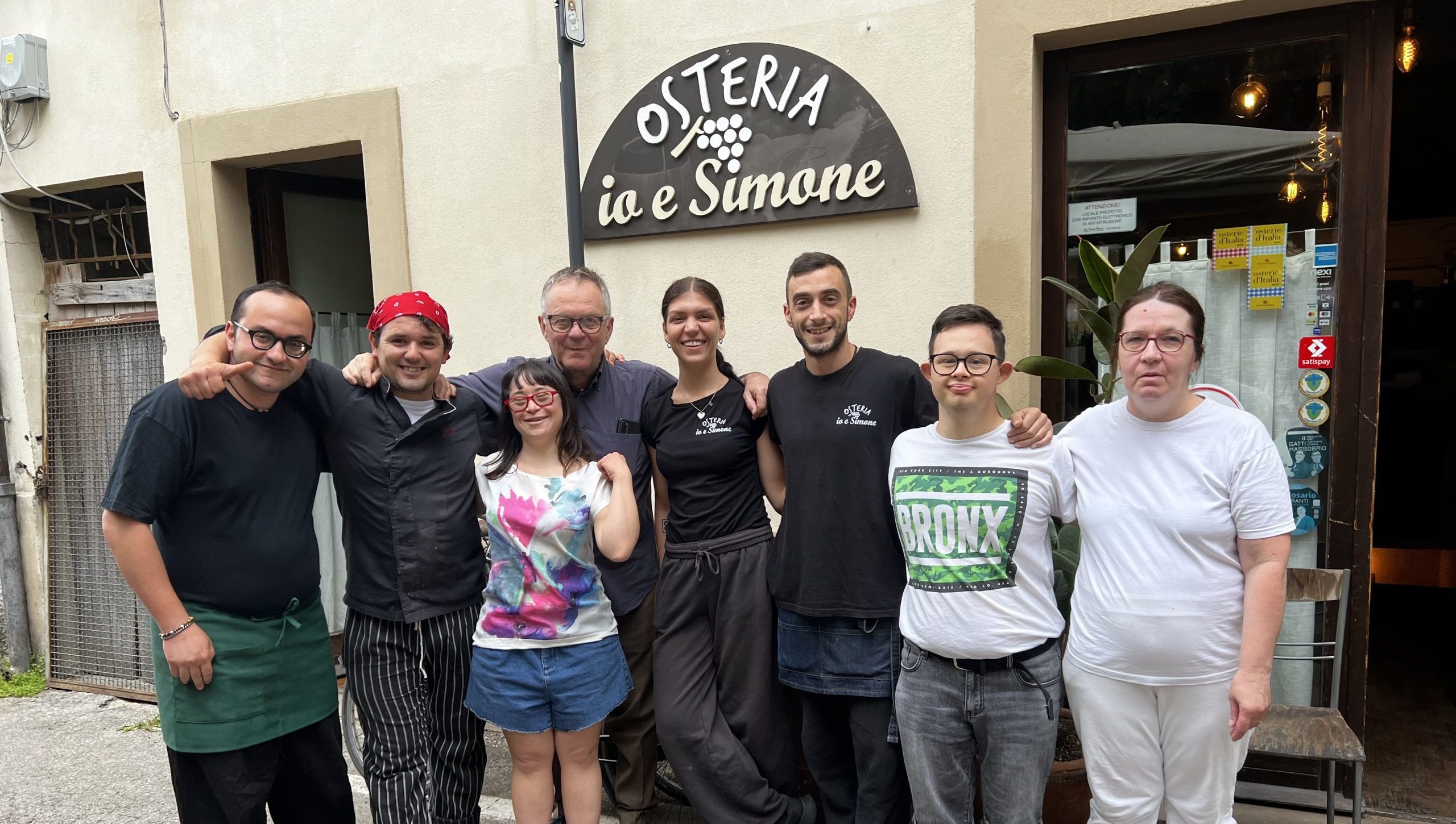 Tutto è iniziato undici anni fa con Paolo, che è qui con noi ancora oggi. Io ogni tanto gli dico che adesso è diventato lui il direttore del ristorante”. Massimo Zangheri ha una lunga esperienza di inserimenti lavorativi di persone disabili o svantaggiate. Lo fa nella sua storica attività di ristorazione in centro a Rimini. “ Non ci eravamo ancora trasferiti in piazzetta Teatini. I suoi genitori sono clienti, lui veniva con loro a mangiare da noi e mi aveva colpito perché lo vedevo a disagio”. Nasce un rapporto che si rafforza reciprocamente e che sfocia in un contratto di tirocinio. “Una volta i suoi mi hanno voluto parlare. Era per chiedermi di tenerlo a lavorare qualche ora con noi. Io ho accettato”.