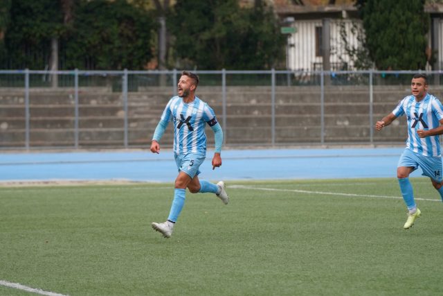 La Sammaurese per mano della capolista Giana Ermino, lo United Riccione per mano del Crema. Una ha perso per un rigore, l’altra per demeriti suoi, ma anche per una giornata negativa della terna arbitrale. I giallorossi di Martini si fermano dopo sei risultati utili consecutivi ma, cosa ancor più grave, vedono uscire dal campo Merlonghi per un infortunio che dovrà essere valutato. Il rischio è che l’attaccante non ci sia per il derby di domenica prossima contro uno United Riccione con il dente avvelenato e che si presenterà al ‘Macrelli’ decimato. Al 90%, infatti, non ci sarà Padovan uscito a braccia per un problema alla caviglia; certa, invece, l’assenza di Ferrara che al 48’ del primo tempo si è fatto espellere dal direttore di gara per una parolina di troppo. Un arbitro che ha innervosito i biancazzurri e che ha negato loro due rigori solari, fermando D’Antoni lanciato solo a rete per un fuorigioco inesistente. Certo è che Benedetti (nella foto) e compagni pagano a caro prezzo anche il 2-1 subìto pochissimi minuti dopo aver trovato su calcio di rigore il gol del pareggio. Calcio di rigore che doveva portare anche all’ammonizione del difensore del Crema già ammonito. Ma nulla è successo.