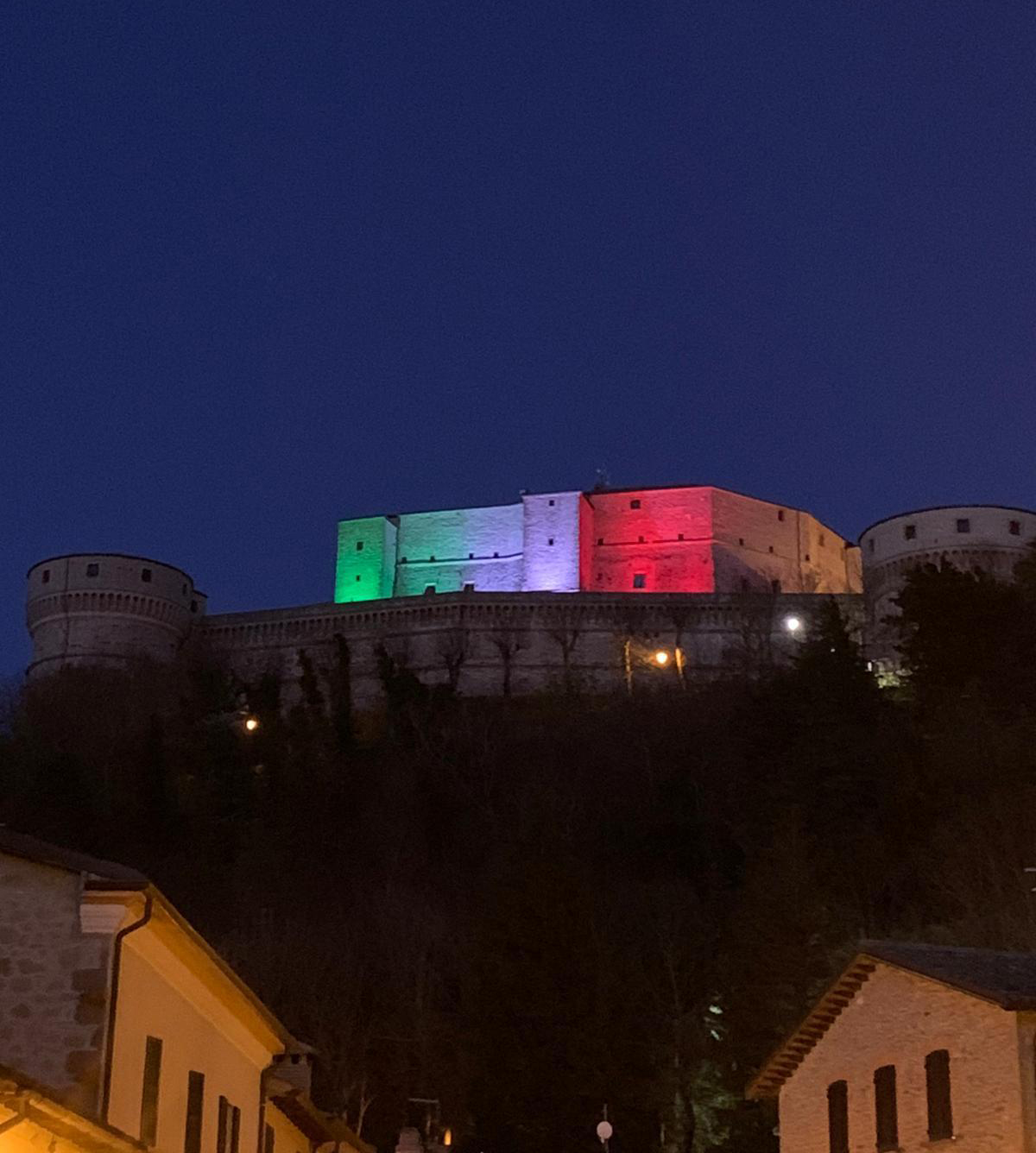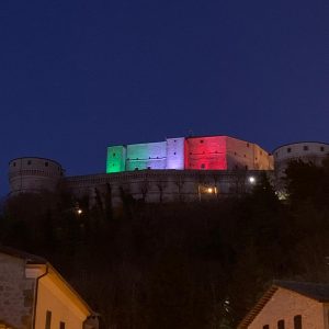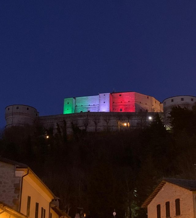 Un tricolore che illumina la notte della Valmarecchia. Un segnale verde-bianco-rosso di speranza nel nome della cultura e dell’unità. E’ quello che da mercoledì notte ha lanciato San Leo. L’ex capitale d’Italia, la città di Cagliostro meta di migliaia di turisti da tutto il mondo, una delle pochissime città italiane a vantare due Pievi (e un gioiello d’architettura e di pace come il convento francescano Sant’Igne a due passi), ha illuminato la sua fortezza con la bandiera Italiana. Un segnale forte di unità nazionale affinché storia e cultura siano da faro per il futuro. “La proposta che lanciamo è di illuminare con il tricolore i nostri principali monumenti. – lo spunto è di Leonardo Bindi, Sindaco di San Leo – Un piccolo segnale di speranza, affinché la nostra storia e il nostro patrimonio artistico e culturale, ci possano aiutare a trovare la serenità e la forza, necessaria per superare questo periodo di grande emergenza e sconfiggere la diffusione del Covid 19. Ritroviamoci tutti insieme nella bellezza, nella cultura e nella storia del nostro straordinario Paese!”.San Leo s’illuminerà di tricolore per tutto il tempo necessario a superare l’emergenza. (t.c.)