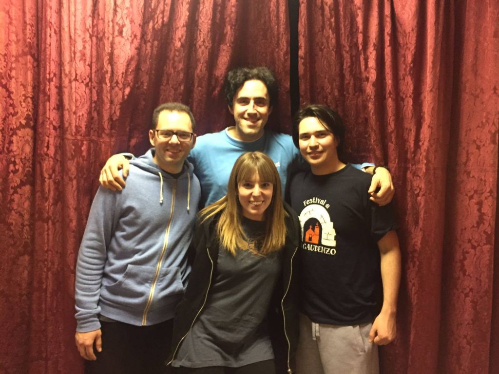 “San Gau” è uno spettacolo corale che nella cornice di sketch dal vivo, imitazioni, parodie, balletti e filmati, ogni anno regala una “pennellata” educativa: il coinvolgimento di tutti coloro che lo desiderano, e la scelta di regalare a turno la prima fila a tutti i ballerini impegnati, perché tutti possano assaporare – almeno per un momento – i riflettori. A dirigere quest’orchestra (una quarantina i partecipanti), l’inossidabile Ceccarini, degnamente spalleggiato dal talentuoso 21enne Vittorio Cicchetti (produttore di Radio Immaginaria), Paolo Morganti e Michela Mulazzani: il frizzante poker (nella foto) presenterà, canterà, ballerà e reciterà accompagnato dai giovani adulti, giovanissimi, educatori e coristi di San Gaudenzo e dai loro amici. Le sceneggiature dei film sono affidate ai giovanissimi Simone Bruge’ e Federico Casadei. In cabina di regia si muovono Carlo Farneti, maestro del SanGauChorus, e il tecnico-fonico Maurizio Morganti. Tra un corto comico e un’imitazione, al centro della serata c’è sempre la gara musicale: microfono in mano, i cantanti si esibiscono, e cercano di strappare consensi con le loro interpretazioni. Due le giurie: una giuria parlante, composta da ragazzi della parrocchia, che come in ogni talent commenterà simpaticamente le esibizioni canore. L’altra giuria, quella di qualità, vedrà protagonisti in prima fila registi teatrali, esperti di musica e spettacolo che, a fine serata, assegneranno il premio della critica. La premiazione sarà affidata al parroco: sarà lui a consegnare ai primi tre classificati le rispettive coppe. “Altra caratteristica importante dello spettacolo è la gratuità. Nessuno percepisce compensi, tutto è realizzato gratuitamente, anche grazie all’Anspi di San Gaudenzo”. Un trionfo di musica, allegria e amicizia.