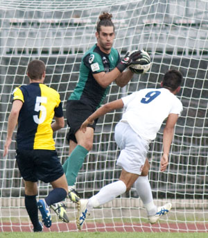 Da Rimini a Santarcangelo, la squadra clementina ha chiuso il suo 2011 al “Mazzola” battendo il Mantova grazie a una magia di Scotto e a due splendide parate di Nardi (nella foto), ora andranno sul campo dello schiacciasassi Casale, sempre più capolista del campionato.