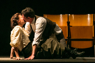 Si comincia il 21 ottobre, al Titano, con un prologo di carattere musicale: l’Orchestra Sinfonica della Repubblica di San Marino eseguirà Pierino e il lupo di Prokof’ev, avvalendosi della voce recitante di Ivano Marescotti che traduce le parole delle celeberrima fiaba in dialetto romagnolo. Si continua poi, sempre al Titano, il 27 (ore 21) con il primo appuntamento della rassegna Sperimental(a)mente: una lezione-spettacolo del giornalista sportivo Fabio Tavelli dal titolo Quando ero Cassius (sottinteso, ovviamente, Clay). Giovedì 26 novembre si prosegue con Polvere – dialogo tra uomo e donna, una riflessione sui rapporti di coppia di Saverio La Ruina. Tutt’altra atmosfera mercoledì 9 dicembre con LORO – Storia vera del più famoso rapimento alieno in Italia: una cronaca grottesca scritta e interpretata da Maurizio Patella. L’8 marzo, festa della donna, Finisce per A: monologo scritto da Eugenio Sideri dedicato all’unica donna che partecipò al Giro d’Italia (per la cronaca, nel 1924). Lo interpreta la sammarinese Patrizia Bollini. Questo segmento del cartellone si conclude il 6 aprile con La dolce guerra (nella foto una scena della piéce), storia d’amore sullo scenario del primo conflitto mondiale.