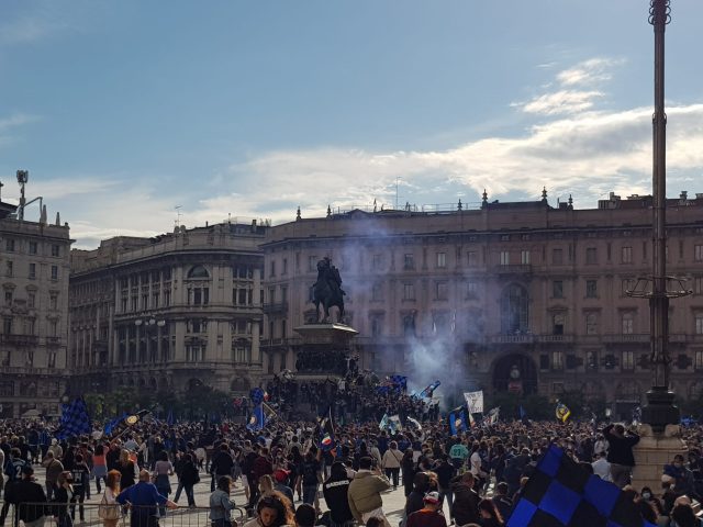 Sono stimate in circa 30 mila, dalla Questura di Milano, le persone che nel pomeriggio sono scese in strada in tutta la città. Tra i punti dove si sono raccolti i gruppi maggiori di tifosi, Largo Cairoli e Piazza Duomo. Festeggiamenti anche nei pressi dello Stadio di San Siro, il tutto comunque senza che siano stati registrati momenti di tensione e di conflittualità.