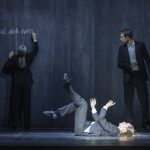 La regista effettua un accuratissimo lavoro sulla gestualità degli interpreti, recuperando in questo modo anche quella dimensione coreutica presente nella seconda versione, dove Hartmann aveva introdotto la figura di una danzatrice. E la risposta ottenuta da ciascuno è stata ottima, a cominciare dalla bravissima Marie Smolka, giovane soprano capace di compiere le più spericolate acrobazie mentre canta con ineccepibile sicurezza. Presenza carismatica, poi, quella dell’attrice Eleonore Bürcher, che tiene le fila del racconto con dolorosa empatia. Sul versante maschile svettava per i mezzi vocali il baritono Benjamin Chamandy, il Lanzichenecco, mentre il tenore Michael Heim è apparso più convincente nel ruolo del Governatore che in quello dell’Eremita. Completavano il cast Oliver Sailer (il sergente e il contadino) e Nikita Voronchenko (il capitano), a loro agio nella vocalità declamatoria: un espressivo Sprechgesang, che si sostiene su una scrittura musicale per molti aspetti debitrice di Stravinskij e Prokof’ev, compositori che per Hartmann rappresentavano un faro.