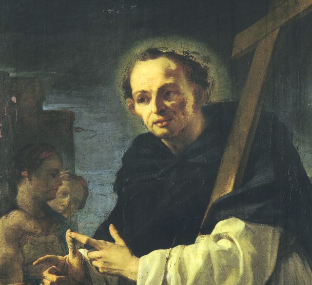 Simone Balacchi nacque a Santarcangelo intorno al 1250 (la data esatta è ancora sconosciuta) da una famiglia di umilissimi origini. Fin dalla più tenera età si dimostrò una persona sensibile e mansueta, attenta ai bisogni e alle necessità degli altri. All’età di 27 anni entrò come Converso (frate laico, ndr) nel Convento riminese di San Cataldo, dei Padri Domenicani. Gli venne affidata la cura dell’orto e si occupò delle pulizie del monastero impegnando così gran parte delle sue giornate. Tutto ciò non gli impedì di uscire spesso per le strade – abbracciato alla sua croce di legno – per compiere opere di predicazione e per insegnare ai fanciulli i primi rudimenti della Dottrina Cristiana. Condusse una vita di privazioni e digiuni e prima dei 60 anni di età divenne cieco, si dice a causa delle tante lacrime versate per la conversione dei peccatori. Durante i suoi ultimi anni, passati a letto, Dio volle onorarlo con alcuni miracoli. Dopo la sua morte, avvenuta il 3 novembre del 1319, i frati dovettero esporre la salma per più giorni, per permettere a tutti i fedeli di avvicinarvisi. In tantissimi, infatti, si raccolsero davanti al convento per onorarlo, amato a tal punto che nell’immaginario collettivo si ritrovava già beatificato. Negli ultimi sette secoli le sue spoglie mortali furono traslate molte volte, arrivando finalmente a Santarcangelo nel 1817. Fu proclamato patrono della città nel 1818 e Beato l’11 marzo di nove anni dopo. Fu il Conte Antonio Baldini, gonfaloniere clementino, a volere nel 1821 la costruzione della Cappella a lui dedicata, sul transetto a sinistra del presbiterio.