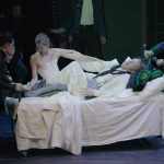 Lo spettacolo di Warner – che a Montepulciano già firmò un indimenticabile Albert Herring di Britten – mette ben a fuoco la personalità della protagonista. Senza tener conto delle numerose indicazioni del libretto che pongono l’accento sul suo aspetto sgradevole, la raffigura come una donna un po’ sfiorita ma ancora avvenente – tale, del resto, doveva apparire a Giorgio, che un po’ alla volta cade nella sua rete – e, unico tratto in grado di sottolinearne la diversità, in palcoscenico è la sola interprete a essere amplificata. Grazie al contributo di Ashley Martin-Davis, che costruisce una scena essenziale, ma non per questo meno efficace nel disegnare i diversi ambienti (è il caso del treno, reso con delle semplici sedie), e ai bei costumi ottocenteschi di Tom Rand, lo spettacolo è molto bello da vedere.