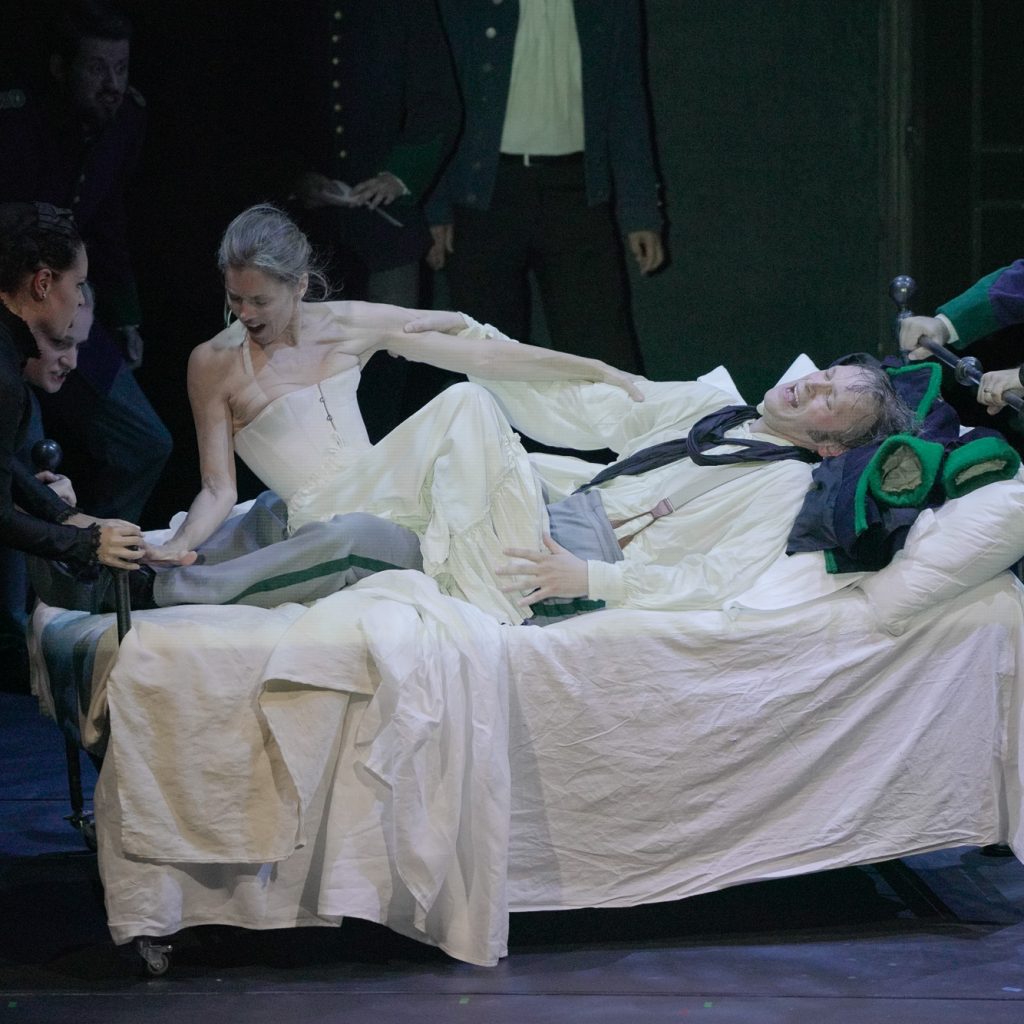 A renderlo scorrevole e godibilissimo da seguire contribuiscono poi, in maniera determinante, la bravura degli interpreti e la direzione musicale. L’ottima cantante-attrice Janie Dee, protagonista, ha costruito una convincente Fosca, querula e manipolatrice, che riesce a strappare Giorgio alla bella e giovane amante, conquistandolo con la sua ossessiva insistenza e i ricatti emotivi. fino ad annullarne la volontà. A interpretare l’oggetto delle sue maniacali attenzioni è stato il baritono Philip Smith, bravissimo nel rendere la trasformazione del personaggio: sempre più traballante nelle sue certezze di militare e di devoto innamorato fino al ripiegamento che lo porterà a soccombere di fronte alla volontà di Fosca. Nei panni della giovane e avvenente Clara, via via più spaesata di fronte all’allontanamento del suo amante, il soprano Anna Gillingham ha sfoderato buone risorse vocali. Un ruolo fondamentale nell’influenzare le sorti della vicenda ce l’ha il dottor Tambourri (di cui la regia sottolinea lo stesso cinico distacco che caratterizza il medico del Wozzeck), interpretato dall’ottimo attore Eric Roberts. Tra i personaggi di contorno vanno segnalati il colonnello Ricci, ossia il tenore Michael Kristensen, e nel piccolo ruolo della madre di Fosca il mezzosoprano Verena Gunz, anche protagonista il giorno successivo di un applauditissimo recital (a Palazzo Ricci, accompagnata al pianoforte da Andreas Teufel), Cabaret Songs, che da Schönberg spaziava fino a Sondheim passando per Eisler e Weill.