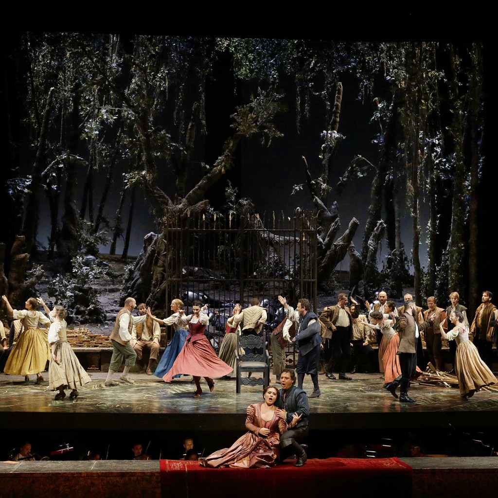 Fortunatamente il cast aveva invece più di un motivo d’interesse. Il tenore Dmitry Korchak ha impresso al personaggio di Torvaldo vigorosa baldanza vocale: sempre a suo agio in una scrittura piuttosto centrale e, ancor più, negli sfoghi in acuto, affrontati con massima naturalezza e straordinaria forza di penetrazione. Il soprano Salome Jicia era la sua fedele e innamorata Dorliska, concupita dal perfido Duca. Grazie a una voce caratterizzata da un certo vibrato, in teoria non del tutto idoneo a un personaggio piuttosto stilizzato, la cantante georgiana ha impresso notevole statura drammatica al personaggio, magari a scapito del versante elegiaco. Con la sua fisicità massiccia ma tutt’altro che minacciosa (anzi, incline al bonario) il baritono Nicola Alaimo ha disegnato – purtroppo con un’emissione un po’ scompaginata – un Duca dalla psicologia contraddittoria, privo degli accenti sinistri propri dell’anima nera della vicenda e attraversato da qualche momento di dubbio.