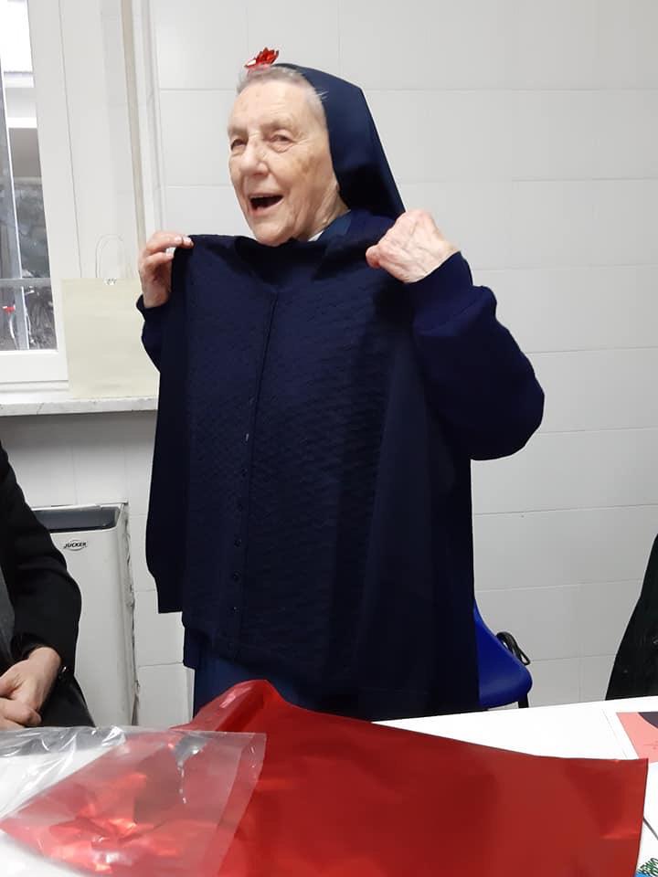 Quando suor Assunta ha detto il suo sì al Signore era il 27 novembre 1949: ormai 70 anni di vita consacrata e 95 anni di età. Oggi Suor Assunta è ancora arzilla e battagliera, sempre nella sua “boutique”, a svolgere servizio per le persone in difficoltà nel settore indumenti.
