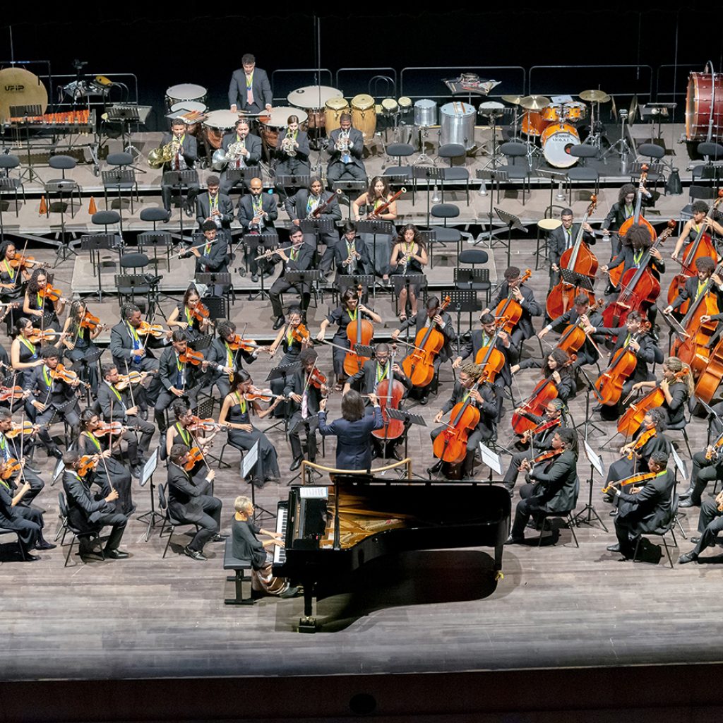 Le capigliature dei componenti l’Orchestra Giovanile di Bahia – multirazziale – sono piuttosto originali, i colori degli strumentisti hanno numerosissime sfumature, l’energia che promanano è straordinaria. Suonano con passione e ben affiatati, si tratti di Beethoven, di musica d’ispirazione etnica o di Villa Lobos. Se proprio si vuole trovare un difetto è nella dinamica non sempre ben articolata: un neo imputabile, forse più che al direttore Ricardo Castro, alla qualità di strumenti non di grande pregio, soprattutto quelli ad arco. Lascia invece perplessi – ma non dipende certo dai giovani orchestrali – l’uso massiccio e invasivo dell’amplificazione nel Teatro Galli, che ha sconvolto gli equilibri sonori nel Terzo concerto di Beethoven (soprattutto nel ‘largo’) e ha mortificato il fraseggio della bravissima Maria JoãoPires. A cosa serve chiamare una grande pianista se poi le sorti della serata dipendono da come sono regolati artificialmente i livelli sonori?