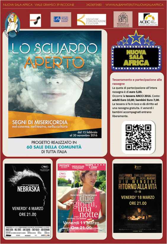 La Nuova Sala Africa di Riccione ha aderito al progetto realizzato in 60 sale della comunità di tutta Italia “LO SGUARDO APERTO segni di misericordia nel cinema, nel teatro e nella cultura.