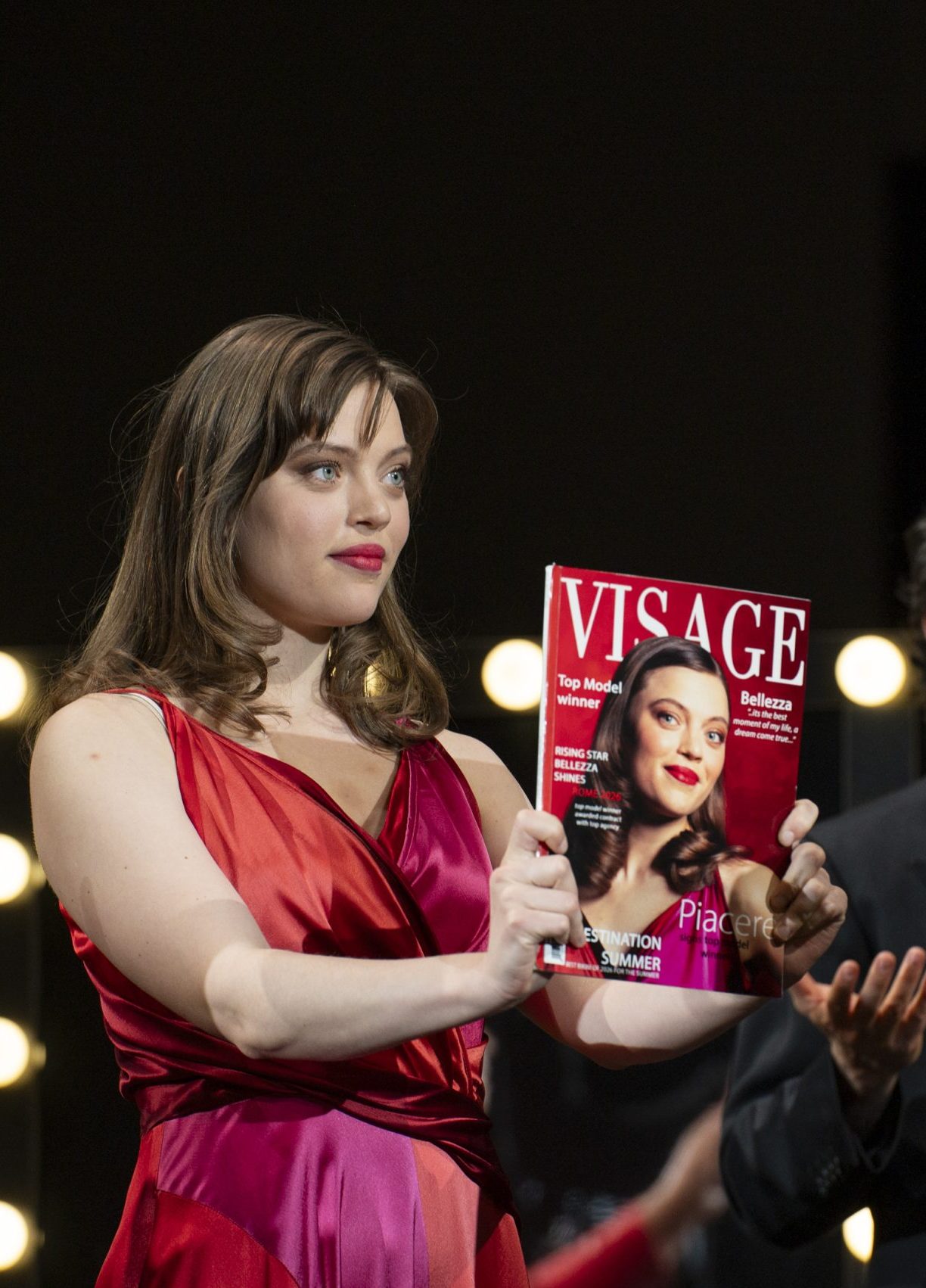 Il soprano Johanna Wallroth (Bellezza) - Ph Fabrizio SansoniAi numerosi registi che si sono cimentati in questa impresa si è aggiunto Robert Carsen con uno spettacolo nato per Salisburgo cinque anni fa e adesso ripreso per la stagione del Teatro dell’Opera. Nel frattempo sono cambiati gli interpreti e Carsen ha fatto alcuni adattamenti per rendere l’allestimento più calato nella realtà romana. Nella moderna allegoria concepita dal regista il personaggio centrale è la Bellezza, raffigurata come una delle tante aspiranti modelle dei nostri giorni: in palcoscenico si assiste dunque alla finale televisiva di un «beauty talent contest», sullo sfondo della Città Eterna, dove ovviamente la Bellezza trionfa.