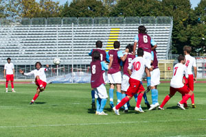 Nella foto, Il gol di Gianluca Di Giulio che aveva illuso il Real Rimini (foto Nicola Serafini)