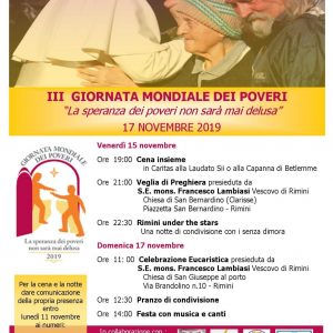 A livello cittadino, i poveri sono tutti invitati alla S. Messa alla chiesa di San Giuseppe al Porto, a Rimini, presieduta dal Vescovo di Rimini, alle ore 11, domenica 17 novembre.