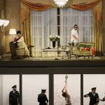 MONACO, 26 maggio 2024 – Se c’è un’opera indissolubilmente legata al contesto storico e alla città in cui è ambientata, questa è Tosca. Nel libretto di Illica e Giacosa sono troppi i riferimenti al 1800, quando ormai la breve stagione della prima repubblica romana si era conclusa, ma se ne avvertivano ancora le conseguenze. Volendo comunque ancorare la vicenda a un preciso periodo storico italiano, Kornél Mundruczó, che firma la regia di una nuova produzione dello Staatsoper di Monaco per celebrare il centenario pucciniano, ha attualizzato quella singolare esperienza, ambientando Tosca negli anni settanta. Così Mario Cavaradossi non è più un pittore, ma un cineasta di sinistra; Cesare Angelotti un brigatista che gli chiede aiuto per nascondersi; il barone Scarpia un braccio armato della Democrazia Cristiana, che approfitta del suo potere per reprimere violentemente ogni forma di dissenso e abusare di ragazzine adolescenti; mentre la cantante Floria Tosca evoca inequivocabilmente Maria Callas. Certo la trasposizione è azzardata, soprattutto perché quel Cavaradossi-regista con gli occhiali neri sempre inforcati ricorda fisicamente Pasolini: qui intento alle riprese di un film intitolato nominalmente Don Giovanni, benché le immagini che si vedono sul palcoscenico rimandino di fatto a Salò. In seguito, mentre – ormai condannato a morte – ripercorre la sua vita, scorrono spezzoni di Mamma Roma, Teorema, della Callas, che per Pasolini fu protagonista del film Medea (oltre ad essere una fra le interpreti più iconiche di Tosca).