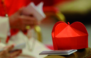 Berretta Cardinalizia: berretto quadrangolare rosso porpora che identifica la dignità cardinalizia.