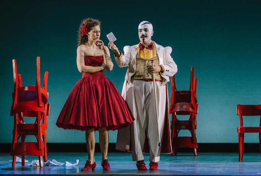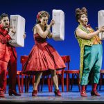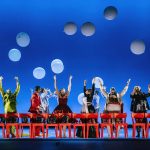Al Teatro delle Muse di Ancona è approdato l’allestimento del Maggio Musicale Fiorentino (qui ripreso da Tommaso Franchin): ultima tappa di un tour attraverso i teatri delle Marche e che, in precedenza, aveva toccato numerose località del nord Italia, Rimini compresa. Lo spettacolo è sempre lo stesso, ma lungo il percorso sono cambiati vari tasselli, con l’avvicendamento di orchestre e direttori diversi, oltre alle inevitabili variazioni del cast. Nello stesso tempo, però, permangono alcuni difetti iniziali dello spettacolo di Michieletto: qualche rumore di troppo sul palco e l’idea di far partire l’azione scenica, fin dalla sinfonia, con un viaggio in treno (una voce registrata annuncia che da Siviglia ci stiamo spostando in Ancona), laddove Rossini notoriamente detestava questo mezzo di trasporto, all’epoca pionieristico. Per il resto, in assenza di una vera e propria scenografia, la regia punta molto sulla caratterizzazione dei personaggi, che i coloratissimi costumi di Carla Teti enfatizzano spiritosamente: dalla mise variopinta di Figaro alla livrea quasi clownesca di don Bartolo, per non parlare del camuffamento da lucertolone di don Basilio. Divertenti alcuni effetti di straniamento, ottenuti facendo ricorso a maschere sul volto: una soluzione meno onerosa, e tutto sommato più ricca di allusioni teatrali, che sostituire i costumi. Efficace, infine, la trovata di far suonare a Rosina un violoncello, anziché il solito fortepiano, durante la lezione di musica (don Bartolo, ridestatosi dal sonno, la utilizzerà come una chitarra).