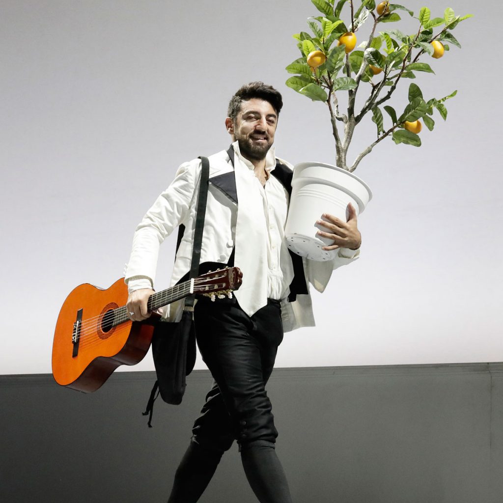 Saggiamente il regista sceglie di non attualizzare la vicenda, che è densa di riferimenti a un’epoca storica ben precisa (il libretto di Sterbini, del 1816, è liberamente ispirato alla famosa commedia ‘illuministica’ di Beaumarchais): giocando sul bianco e nero, con le uniche varianti cromatiche degli abiti di Rosina e del grembiule di Berta, sfrutta l’ampio palcoscenico dell’Adriatic Arena per concepire – semmai – una Siviglia mentale, elegante e luminosa (a curare le luci è Massimo Gasparon). In questo spazio gli interpreti, che indossano abiti di foggia ottocentesca senza tempo, si muovono a loro agio e la vicenda procede con chiarezza esemplare: anche chi non ha grande familiarità con Il barbiere – e tra il pubblico gli stranieri sono moltissimi – può seguirla con estrema facilità, apprezzando ogni dettaglio.