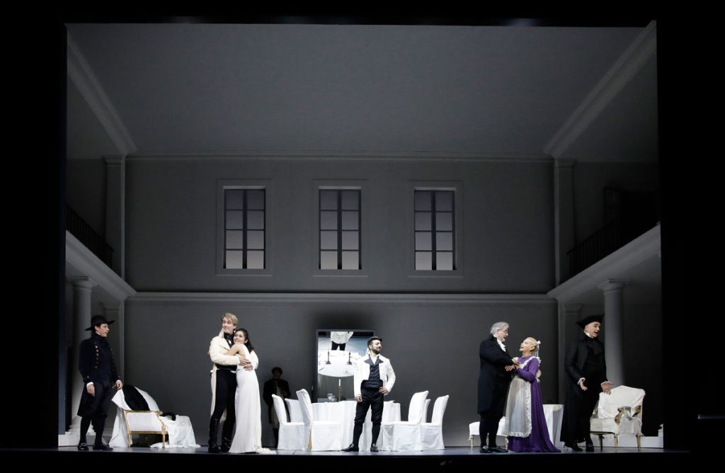 La regia si preoccupa di definire con cura i caratteri dei personaggi: tutti gli interpreti appaiono ben calati nei loro ruoli. Dal podio, il canadese Yves Abel – ormai un veterano del ROF – ha profuso altrettante attenzioni verso i cantanti, curandone la dizione e realizzando al meglio i recitativi. Ha diretto l’Orchestra Sinfonica della RAI con precisione e rigore ritmico, ma forse trascurando un po’ la varietà dinamica, in una lettura libera da certi discutibili (anche quando illustri) retaggi del passato.