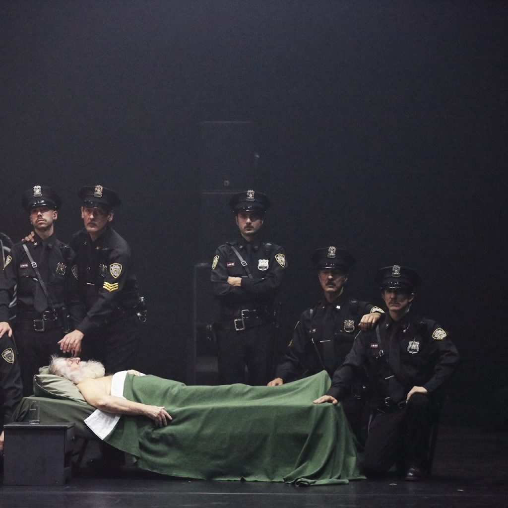 Per rappresentare in modo metaforico una società dove vige ormai una completa omologazione dei comportamenti, e dove sono spariti il discernimento critico individuale e qualsiasi forma di autonomia del pensiero, Romeo Castellucci ha scelto un gruppo di figuranti presi dalla strada (tranne un paio di attori professionisti): eseguono fedelmente quanto hanno sottoscritto in un accordo, con cui s’impegnano a rispettare ordini impartiti mediante auricolari. La scelta d’indossare l’uniforme da poliziotti, poi, non appare casuale: è la società stessa ad aver affidato ai corpi di polizia la liceità di esercitare la violenza.