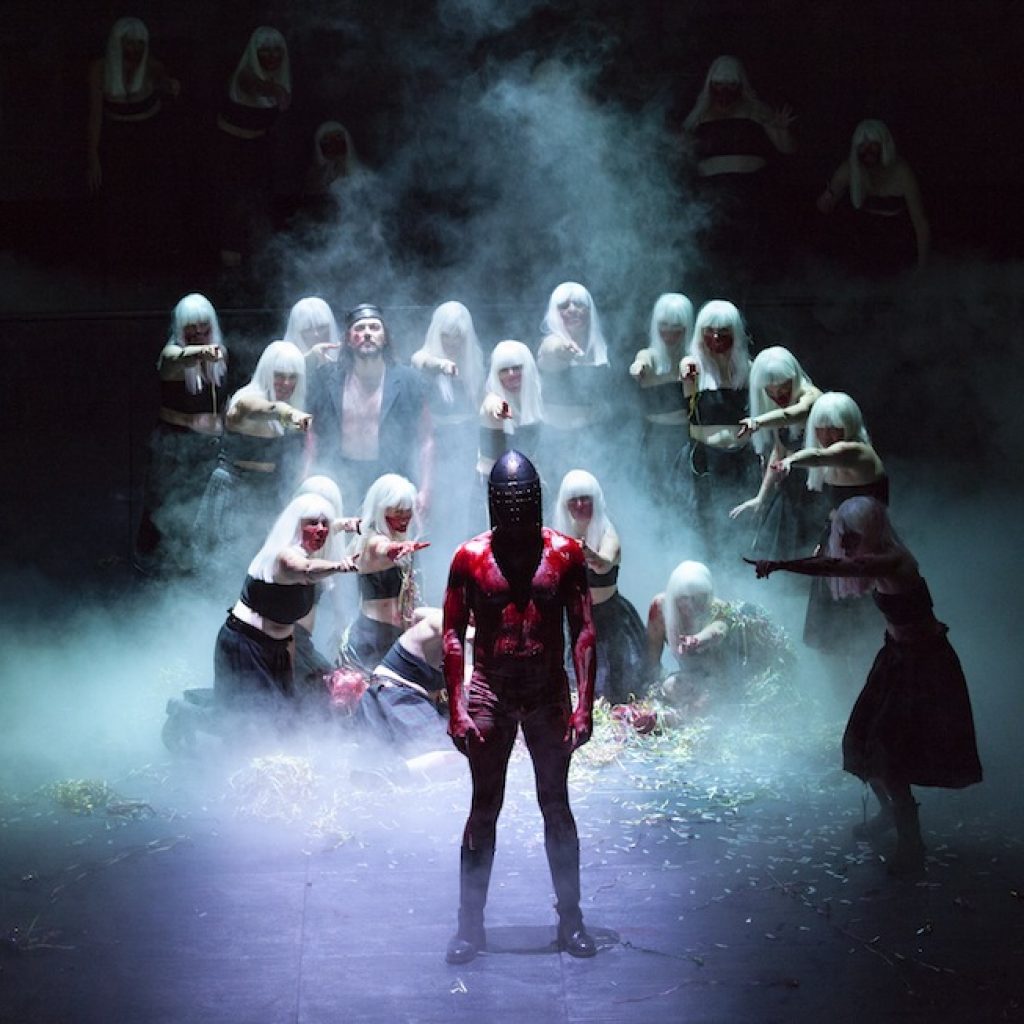 A partire dalla presenza delle streghe: con i loro capelli di un artificiale biondo platino non si limitano ad assistere alla tragedia dal bordo superiore della scena, ma sembrano piuttosto incitare il protagonista a perseguire i suoi fini, a raggiungimere il successo ad ogni costo. In una lettura d’inquietante attualità, si vedono infatti personaggi protesi solo alla conquista del potere, senza alcuna consapevolezza e preoccupazione per come si governa.