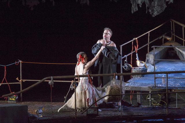 Lo spettacolo del regista inglese John Fulljames riesce a rendere ben intelligibile il gioco di specchi tra i quattro personaggi, reali e virtuali. Con l’ausilio della scenografa e costumista Soutra Gilmour delinea poi un contesto di profondo degrado fisico e mentale: uno spazio claustrofobico da “dopo catastrofe” desolato, buio e opprimente, con brandelli di tende calati dal soffitto, e una ringhiera che isola i due interpreti da un mondo per loro alieno. In tale cornice visiva le crudeli intenzioni racchiuse nelle parole dei protagonisti – due straccioni che evocano gli antieroi beckettiani – risultano ancor più stranianti nella loro autoreferenzialità e nel totale disinteresse rispetto all’umanità circostante. La percezione, palpabile, è quella di un’angosciosa metafora del vuoto in cui agonizza la nostra civiltà.