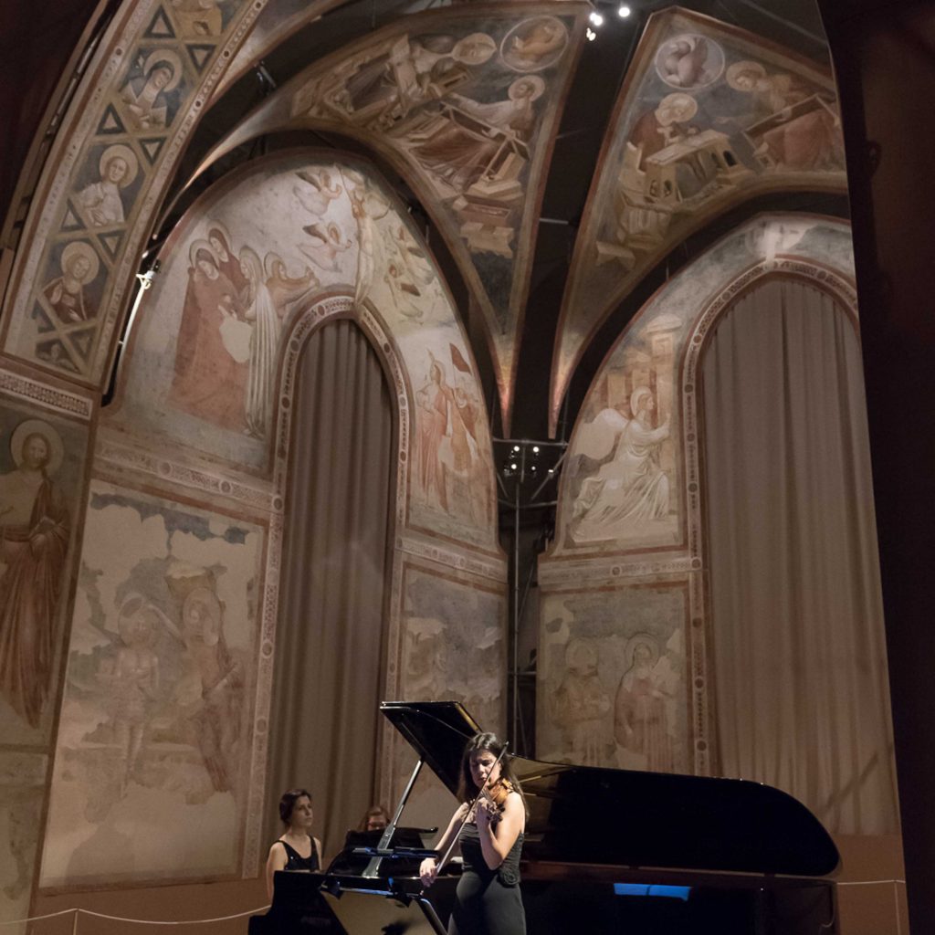 Durante il primo appuntamento, ospitato nella splendida Sala del Refettorio del Museo Nazionale (dove sono custoditi gli affreschi attribuiti a Pietro da Rimini), si è esibito il duo formato dalle sorelle Gazzana – Natascia al violino e Raffaella al pianoforte – che vantano con il maestro ucraino una consolidata frequentazione, tanto che nel programma della serata figuravano anche Quattro pezzi, espressamente dedicati da Silvestrov alle due talentate ragazze.