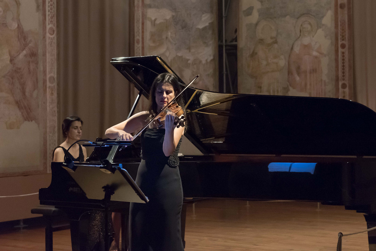 L’apparente minimalismo della scrittura del musicista ucraino – definito un “romantico d’avanguardia” – in realtà si sostanzia in radici solidamente piantate nella tradizione: le due interpreti (sia singolarmente ai rispettivi strumenti sia eseguendo i brani concepiti per duo) hanno sottolineato queste ascendenze, inframmezzando la musica di Silvestrov con brani di autori del passato, in un raffinato percorso dove si percepivano nitidamente le parentele con Bach o Mozart, così come Ysaÿe. La netta caratterizzazione in senso melodico, che contraddistingue la scrittura di Silvestrov, viene in tal modo illuminata dal raffronto con gli illustri predecessori, in un continuo gioco di specchi e affascinanti riverberazioni. Affiorano così nella sua musica gli echi di una memoria sedimentata in profondità, e restituita in forma nuova, attraverso un linguaggio e una sensibilità del tutto contemporanei.