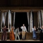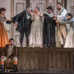 Nel Don Giovanni, la lettura musicale di Erina Yashima, pur precisa e corretta, tendeva – almeno nelle intenzioni – a valorizzarne la componente tragica più di quella giocosa, ma latitava, fin dall’ouverture, il vitalismo necessario a sottolineare le imprese dell’impenitente seduttore. In palcoscenico (qui ci si riferisce a una recita in trasferta a Rimini) Christian Federici, pur con un canto corretto e adeguato physique du rôle, è apparso un Don Giovanni poco sanguigno e fin troppo compassato, tanto che l’ipercinetico Gleadow gli porta via spesso la scena proprio a causa di un esibizionismo, invece, eccessivo (per tacere di un’emissione talvolta scompaginata). Risultato: il rapporto padrone-servo, che Mozart e Da Ponte già rivestono di ambiguità, appare piuttosto sbilanciato. Iulia Maria Dan ha il colore del soprano drammatico e disegna un’intensa Donna Anna; mentre da parte sua la Vendittelli ha convinto più nelle vesti di Donna Elvira che in quelle di Susanna: peccato, semmai, che – trattandosi della prima versione, a Praga – mancasse la splendida aria Mi tradì quell’alma ingrata. Lo stesso vale per Don Ottavio, l’apprezzabile tenore Julien Henric, privato di Dalla sua pace. Completava il terzetto femminile Chiara Skerath, vocalmente graziosa, ma senza quella malizia necessaria a configurare il personaggio di Zerlina. Interessante l’idea di far interpretare – come si fece per la prima del 1787 – allo stesso cantante, Callum Thorpe, il ruolo del Commendatore (dove è apparso più convincente) e di Masetto. Basata sulla valorizzazione attoriale dei cantanti, la regia di Alexandre trova anche una soluzione scenica di notevole efficacia per il finale, quando il protagonista sta per precipitare all’inferno: sono dei preti in tonaca nera ad allestire il banchetto dove Don Giovanni invita il Commendatore; e saranno proprio loro a traghettarlo nel mondo dei dannati, lasciandolo scomparire con un semplice sollevare della tovaglia.