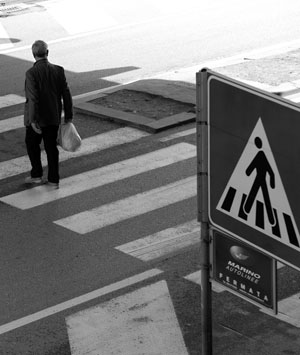 La stessa cosa accade in via Matteotti: resto ferma davanti alle strisce per un paio di minuti. Chi guida è del tutto indifferente, guarda i pedoni in senso di sfida e qualcuno addirittura accelera. Dopo 11 conduttori negligenti, una Punto di un signore di mezza età si ferma. Tiro un sospiro di sollievo, la strada è mia. Invece no. Ecco il sorpasso azzardato della macchina che stava dietro la Punto, mi paralizza ma non blocca un “Ma sei matto?”. Il giovanotto, come se nulla fosse successo, mi manda a quel paese e riparte in quarta.