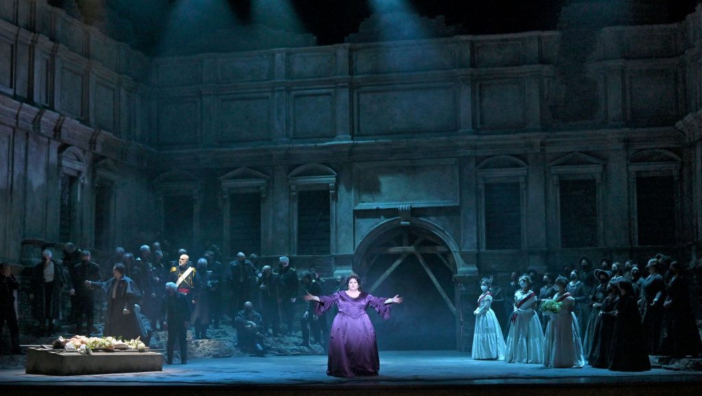 Si mantiene dunque il riferimento alla versificazione classicista del libretto di Felice Romani (1831), contraddetta però da luci violente e un finale truculento, in dissonanza con la musica di Bellini e la poesia del suo librettista. La protagonista infatti non salirà su quel rogo, che ha un profondo significato catartico, ma viene linciata dalle altre donne: le stesse che all’inizio componevano pietosamente sull’ara i morti del conflitto. Stando almeno alle dichiarazioni del regista, Norma ha infatti tradito la patria e, dopo essere stata ritenuta una guida per i Galli, ha ormai perso ogni aura sacrale: merita dunque il castigo di una folla non disposta a perdonarla. Come talvolta ci insegna la storia.