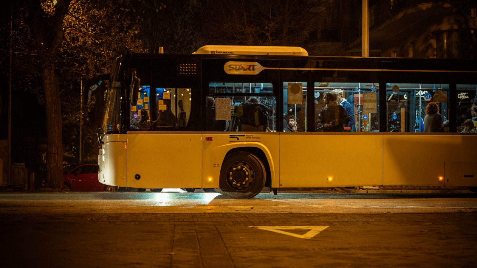 autobus con troupe a bordo