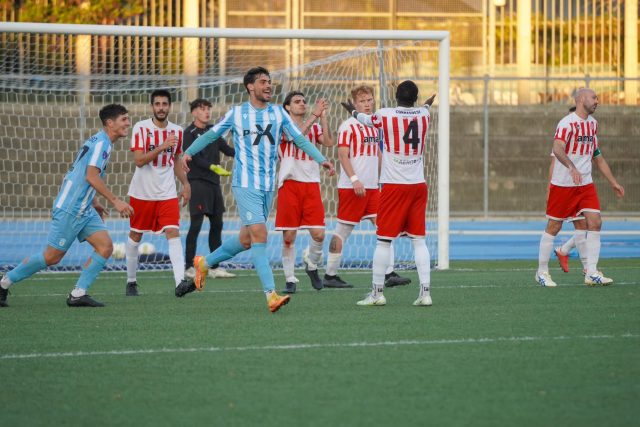 Una, la Sammaurese, si dispera per un rigore preso al 93’ che è valso la sconfitta in casa del Sant’Angelo, l’altra, lo United Riccione, al contrario, se la ride per una vittoria fondamentale in chiave futura. Partiamo dai giallorossi che in terra di Lombardia dominano la prima parte di gara, sfiorando il vantaggio per due volte con capitan Bonandi. Poi, al 40’, sulla prima vera conclusione in porta, i padroni di casa passano con Zazzi. Martini predica calma e i suoi, in appena sessanta secondi, la rimettono in sesto, Bonandi, sempre lui, regala un assist al bacio al giovanissimo Tamai (classe 2005) che la stoppa, si gira e segna. Nel secondo tempo la partita è in perfetto equilibrio fino al 93’ quando Maggioli trattiene Gomez con l’arbitro a indicare il dischetto del rigore tra le vibranti proteste romagnole. Proprio Gomez ha poi realizzato la rete del ‘game over’. Un ko davvero indigesto per la Sammaurese che domenica tornerà al ‘Macrelli’ dove l’ospite d’onore sarà una Pistoiese che, dopo l’esonero di Cascione, ha trovato con Luigi Consonni, il giusto equilibrio, tanto che i toscani sono a soli tre punti dalla vetta. Gli orange, lontano da casa, hanno conquistato15 dei loro 26 punti totali. Nove le reti realizzate con la valigia in mano (8 quelle casalinghe) mentre in trasferta ha raccolto il pallone in fondo al sacco solo per 4 volte. Un dato interessante, 5 reti sono state realizzate tra il 46’ e il 50’, quindi massima attenzione. Dalla Sammaurese allo United Riccione che, in piena emergenza, senza lo squalificato Ferrara, senza l’infortunato Padovan (per lui almeno tre i mesi di stop) e senza Scrosta pronto alla rescissione e con capitan Benedetti fuori per infortunio, è riuscito a superare una Correggese che, al contrario, scoppiava di salute. Un 3-1 (nella foto il gol di Colacicchi) figlio anche di quella fortuna che fino adesso è stata molto avara con i biancazzurri perché il salvataggio di Contessa sulla linea ha impedito il 2-2, con Lordkipanidze che poi ha chiuso la contesa segnando il 3-1. Ora, sabato, lo United Riccione ha chiesto l’anticipo perché mercoledì giocherà in casa la gara di coppa Italia con la Bagnolese, arriverà al ‘Nicoletti’ il Prato. I toscani, lontano da casa, hanno conquistato solo 7 punti sui 20 totali. Sette sono anche le reti realizzate mentre quelle subìte sono state 11.