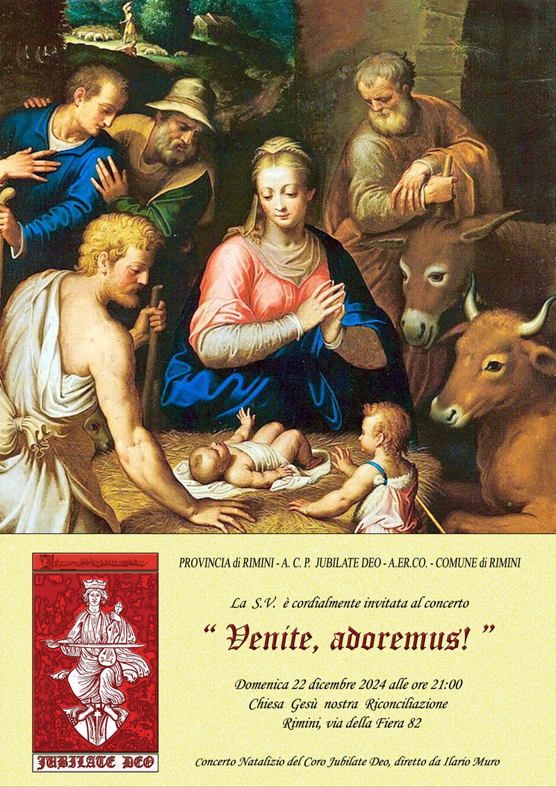 Domenica 22 dicembre 2024, alle ore 21,00 presso la chiesa Gesù Nostra Riconciliazione di Rimini (Via della Fiera n. 82), si rinnova l’appuntamento con i concerti del coro polifonico Jubilate Deo, che presenta un programma di musiche natalizie intitolato: “Venite, adoremus! ”.