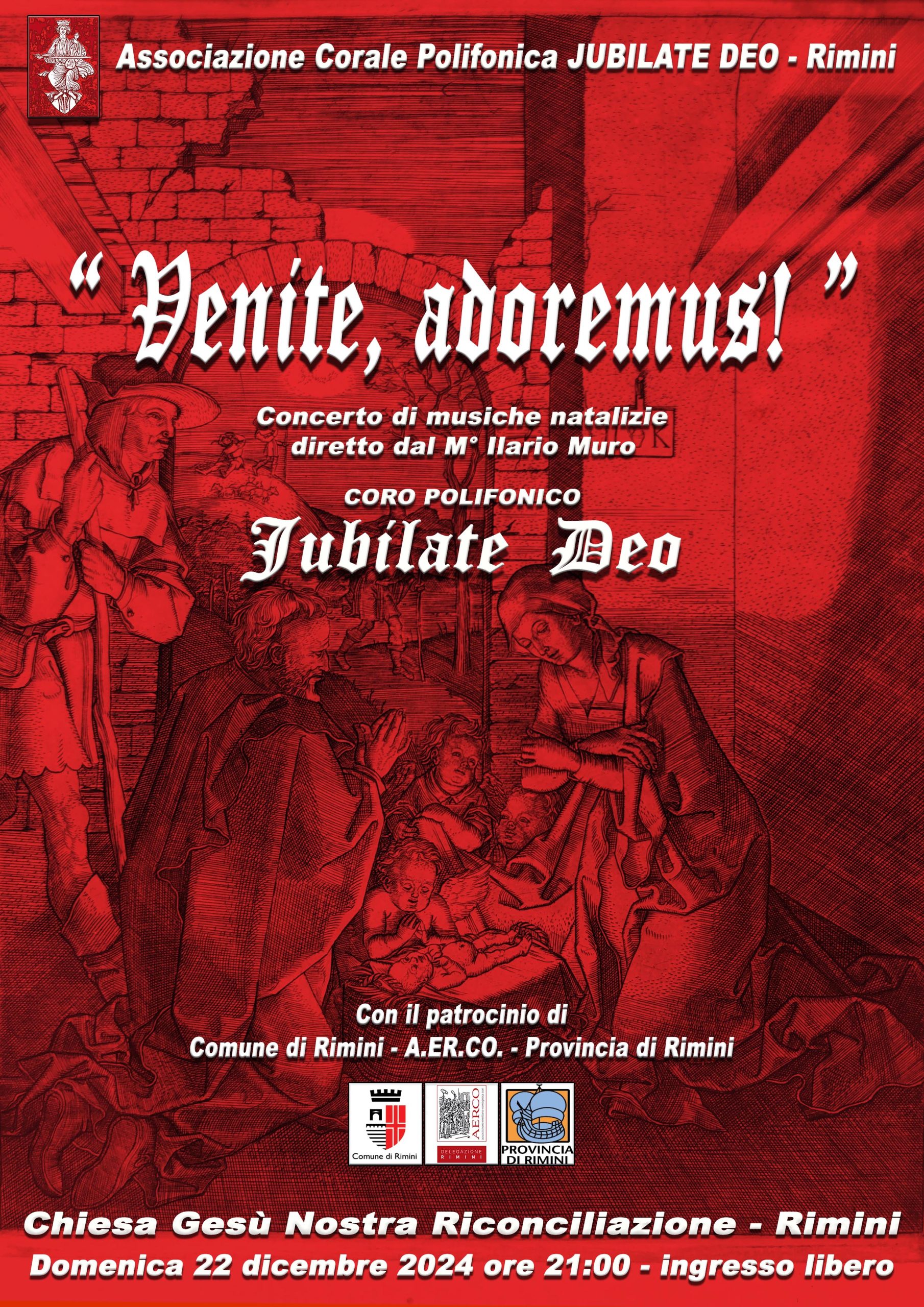 Domenica 22 dicembre 2024, alle ore 21,00 presso la chiesa Gesù Nostra Riconciliazione di Rimini (Via della Fiera n. 82), si rinnova l’appuntamento con i concerti del coro polifonico Jubilate Deo, che presenta un programma di musiche natalizie intitolato: “Venite, adoremus! ”.