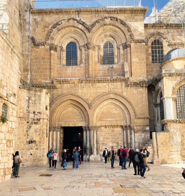 La sera sulla piazza del Santo Sepolcro ‒ l’immensa e antica Basilica che contiene i luoghi santi del Calvario e della Tomba di Cristo ‒ il sole radente colora le pietre di un accesa tonalità rosacea. È appena finito il lungo rito cattolicolatino che apre la settimana santa, una sorta di processione presieduta dallo stesso Patriarca di Gerusalemme, che si reca con i frati francescani custodi della Basilica ed i fedeli sulla pietra della crocifissione e sulla tomba vuota del Risorto.